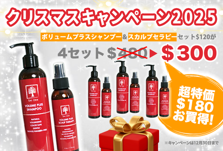 SAI ZENシリーズは、自然の恵み・ハーブをふんだんに使用した、自然派頭皮ホームケアプロダクトです。人間が本来持つ自然治癒力を高めて、健康で強い髪を作る頭皮に改 善し、さらにその状態を持続できるように頭皮のバランスを整えていきます。頭皮を最 も良い状態に保つことで、新陳代謝がアップし、驚くほどの髪のボリュームとコシを取り戻します。 地肌が弱く、肌荒れや抜け毛に不安を持つ方でも、安心して使える自然派頭皮ホームケアプロダクトです。