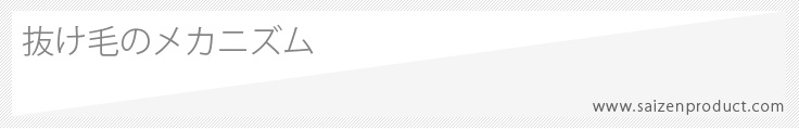ホルモンバランスの乱れで抜け毛が起こることもあります。女性の場合、25~30歳以降に分け目を中心に薄くなり、髪は細く次第にボリュームを失っていきます。また更年期の影響でホルモンバランスが崩れ、脱毛に繋がることがあります。 |